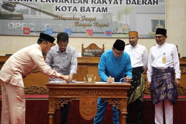 Penandatanganan dilakukan langsung oleh Walikota Batam, Muhammad Rudi, dan Ketua DPRD Batam, Nuryanto, yang disaksikan oleh dua pimpinan DPRD lainnya.