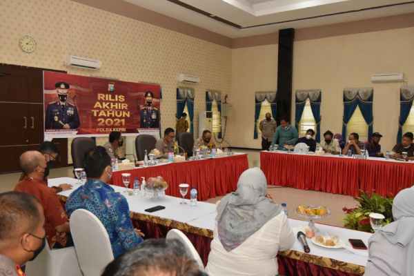 Medianesia.id, Batam – Kapolda Kepri Irjen Pol Dr. Aris Budiman, M.Si., memaparkan langsung Rilis Akhir Tahun 2021 Polda Kepulauan Riau. Dalam kegiatan tersebut, Kapolda Kepri didampingi oleh Irwasda Polda Kepri, Karo Ops Polda Kepri dan dihadiri oleh Para Pejabat Utama Polda Kepri, Ketua Ombudsman Provinsi Kepri, Kadis Kominfo Provinsi Kepri, Ketua KIP Kepri, Ketua KPID Kepri, Ketua PWI Kepri dan para pimpinan Redaksi media di Provinsi Kepri serta para awak media di Provinsi Kepri, di Graha Lancang Kuning Polda Kepri.