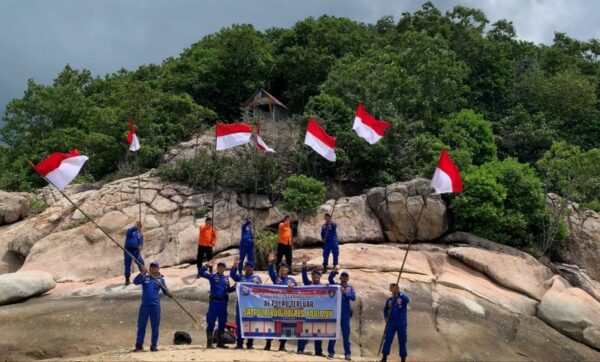 Medianesia.id, Batam – Satuan Polisi Air dan Udara (Satpolairud) Polres Karimun mengibarkan puluhan bendera merah putih di pulau perbatasan yang berada di perairan Selat Malaka yakni, Pulau Takong Hiu Besar, Kamis (11/8/2022).