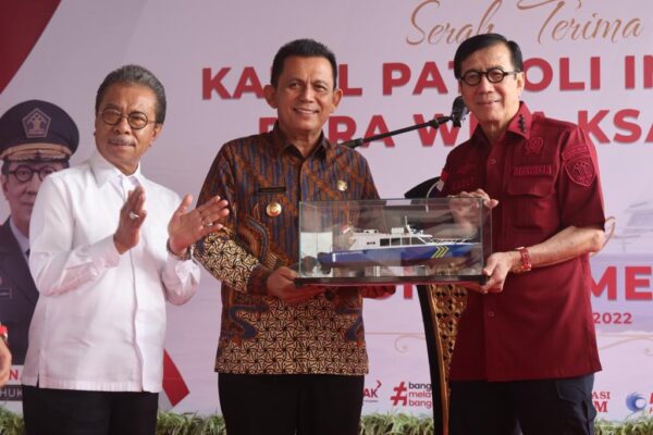Medianesia.id – Pemerintah Provinsi Kepulauan Riau memberikan bantuan hibah berupa kapal patroli imigrasi untuk Kementerian Hukum dan HAM RI. Penyerahan kapal cepat (speed boat) tersebut dilakukan oleh Gubernur Kepri Ansar Ahmad dan diterima langsung oleh Menkumham RI Yasonna H Laoly dalam acara Serah Terima Kapal Patroli Imigrasi Pura Wira Ksatria dan Launching Second Home Visa di Lagoi Bintan Kepulauan Riau pada Rabu (21/12/2022).