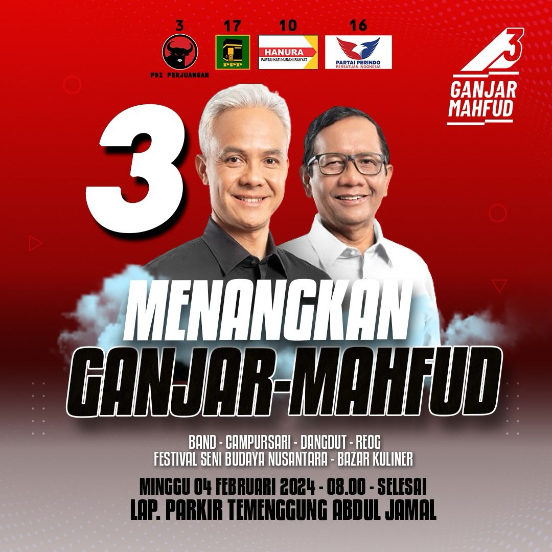 “Kampanye Ganjar-Mahfud di Batam yang akan dihadiri oleh Cawapres, Pak Mahfud akan kita kemas dalam Pesta Rakyat Ganjar-Mahfud Kota Batam,” jelasnya.