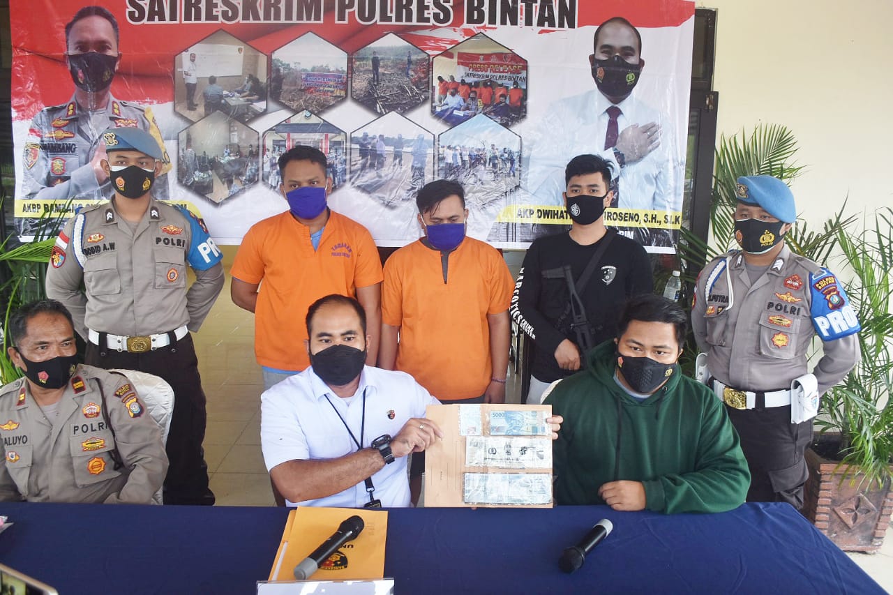 Kasat Reskrim Polres Bintan AKP Dwi Hatmoko Wiraseno Menjelaskan, Satreskrim Polres Bintan berhasil mengamankan 2 dari 3 pelaku Penggelapan yakni HPJ (34), HA (29) dan 1 orang masih DPO (daftar Pencarian Orang).