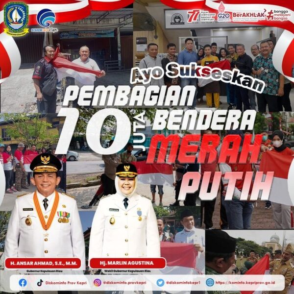 Medianesia.id – Pemerintah Provinsi Kepri sangat mendukung ‘Gerakan Pembagian 10 Juta Bendera Merah Putih’ yang diselenggarakan oleh Kementerian Dalam Negeri Republik Indonesia berdasarkan surat nomor : 003.1/4397/SJ tanggal 29 Julu 2022, dalam rangka menyemarakkan Peringatan Hari Ulang Tahun Ke-77 Kemerdekaan Republik Indonesia.