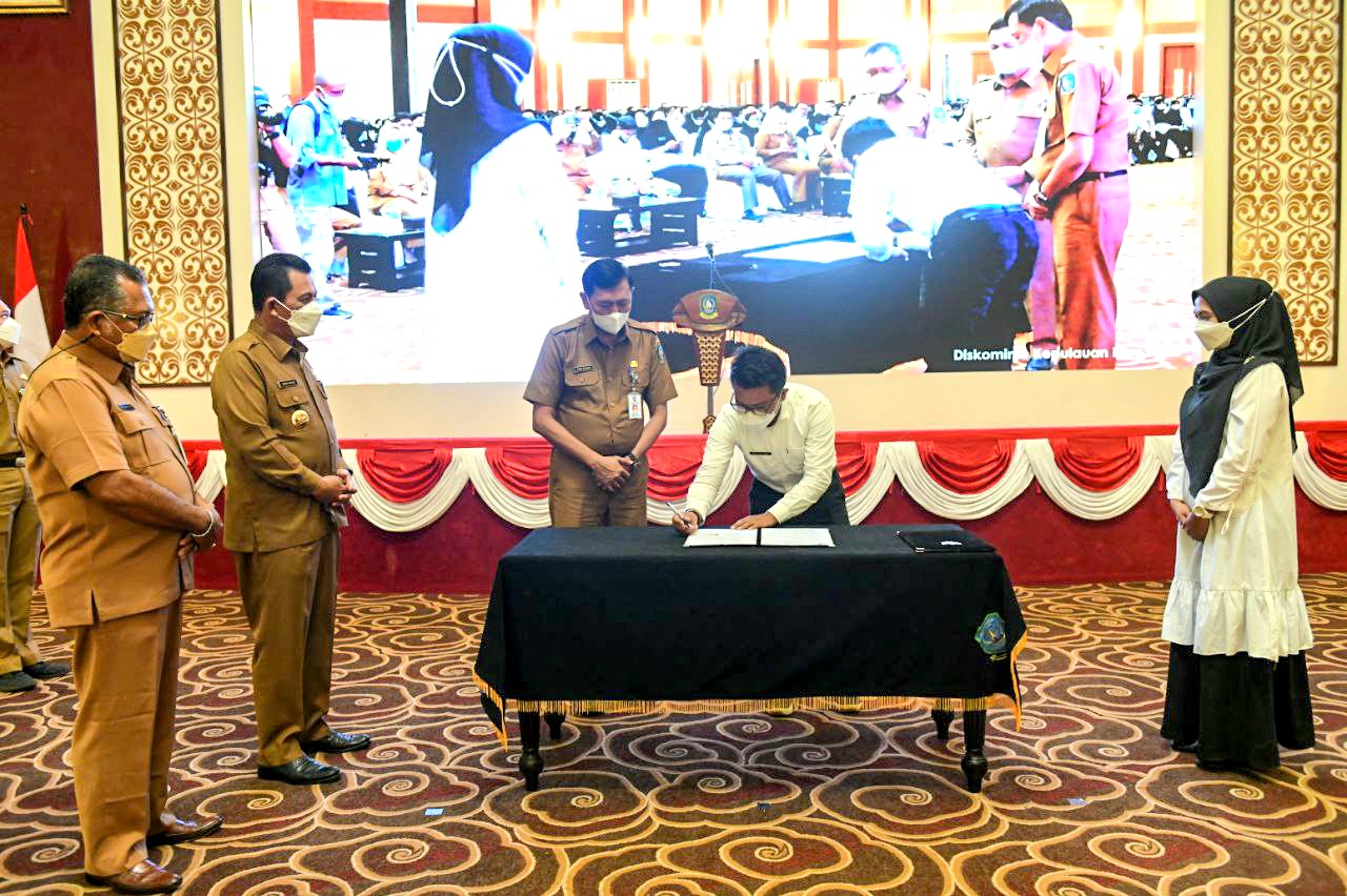 Perpanjangan kontrak ditandai dengan penandatanganan Surat Perjanjian Kerja bagi PTK non ASN di aula Wan Seri Beni, Dompak, Tanjungpinang, Senin (21/2/2022).