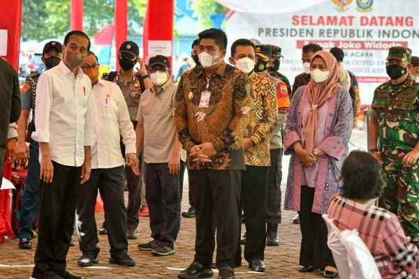 “Terima kasih, terima kasih, saya sangat mengapresiasi percepatan vaksinasi yang dilakukan Pemda. Untuk percepatan, saya minta TNI Polri agar membantu percepatannya” ungkap Presiden Jokowi.