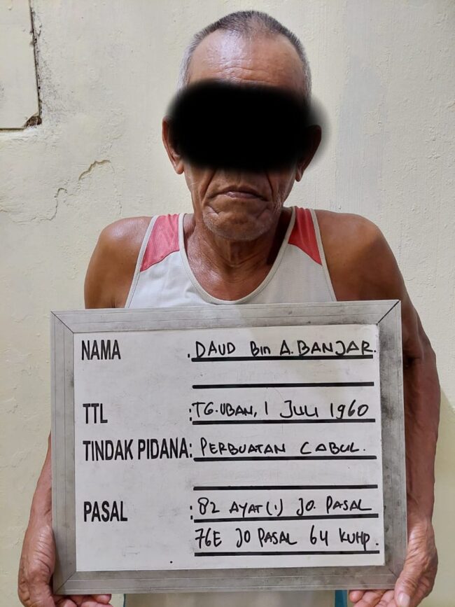 Aksi bejat pria berinisial D (60)ini, langsung dihalangi pasca diamankan petugas kepolisian di seputaran Tanjung Uban.