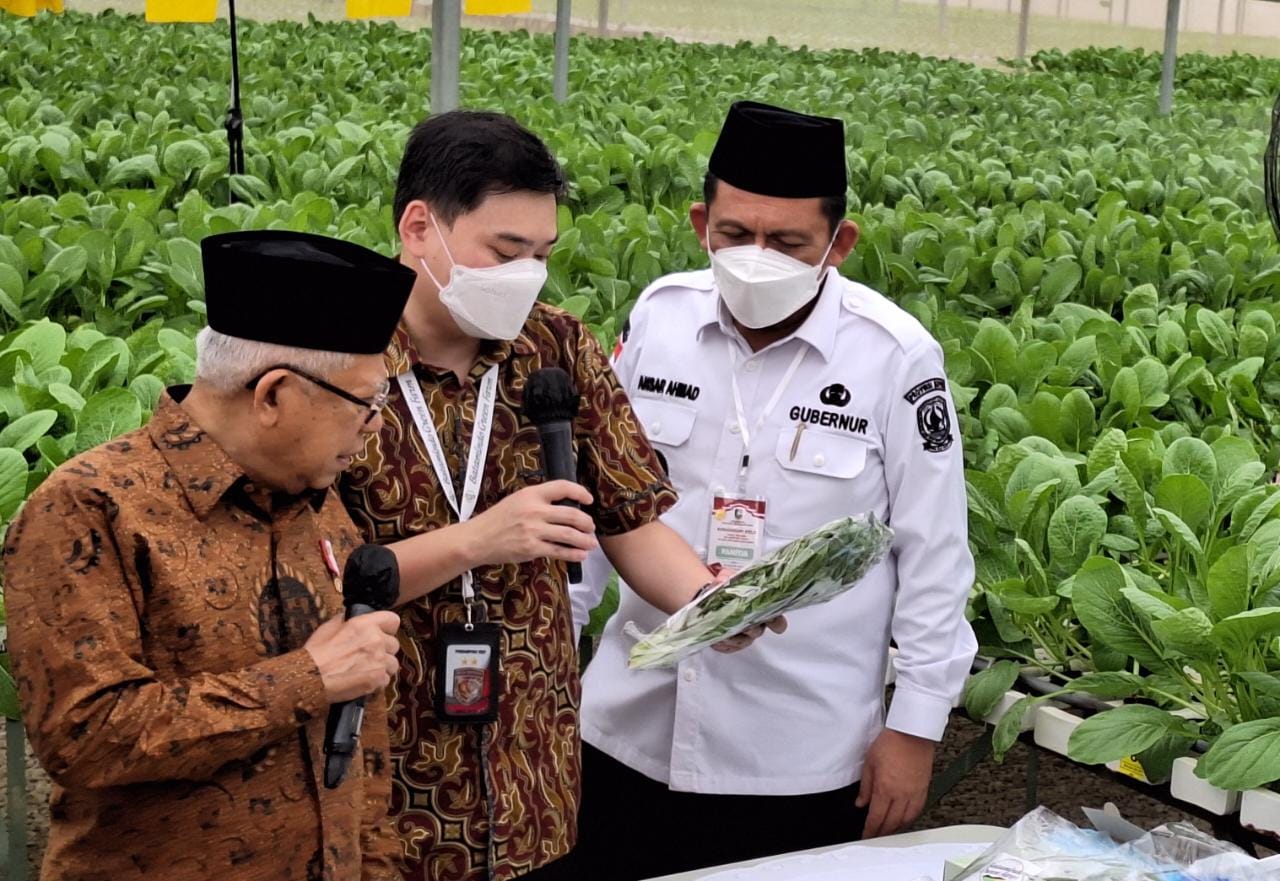 Salah satu agenda kunjungan Wapres Ma’ruf Amin adalah melakukan panen sayur hiroponik di Batamindo Green Farm yang dikelola PT. Singapura Segar Sayur Hijau.