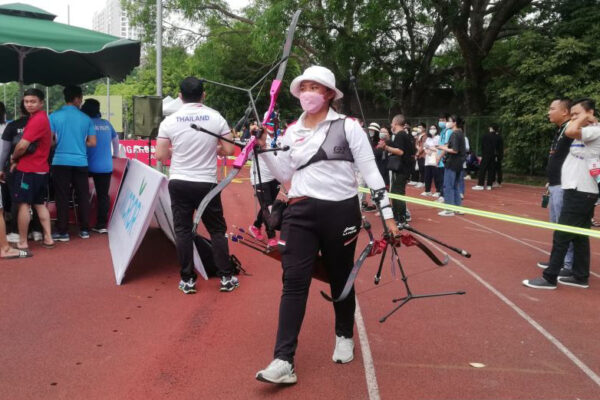 Emas pertama diraih Indonesia dari nomor recurve beregu putra yang terdiri dari Riau Ega Agatha Salsabila, Arif Dwi Pangestu, dan Bagas Alvyanto Prastyadi.