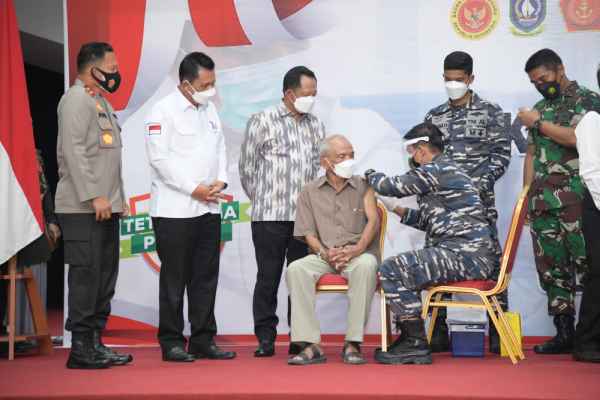 Usai dilakukan penekanan sirene, dilalukan penyuntikan secara simbolis kepada perwakilan lansia dan dewasa.