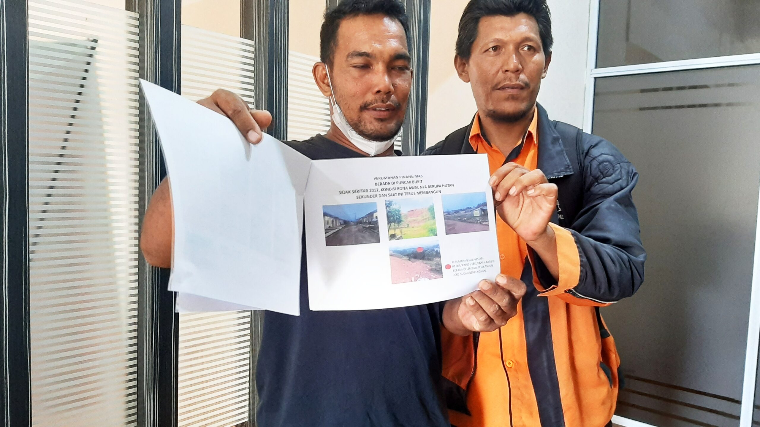 Dalam aduan tersebut, warga yang diwakili ketua RT setempat mengadukan pihak develover Perumahan Pinang Mas telah melakukan tindak kejahatan lingkungan hidup.